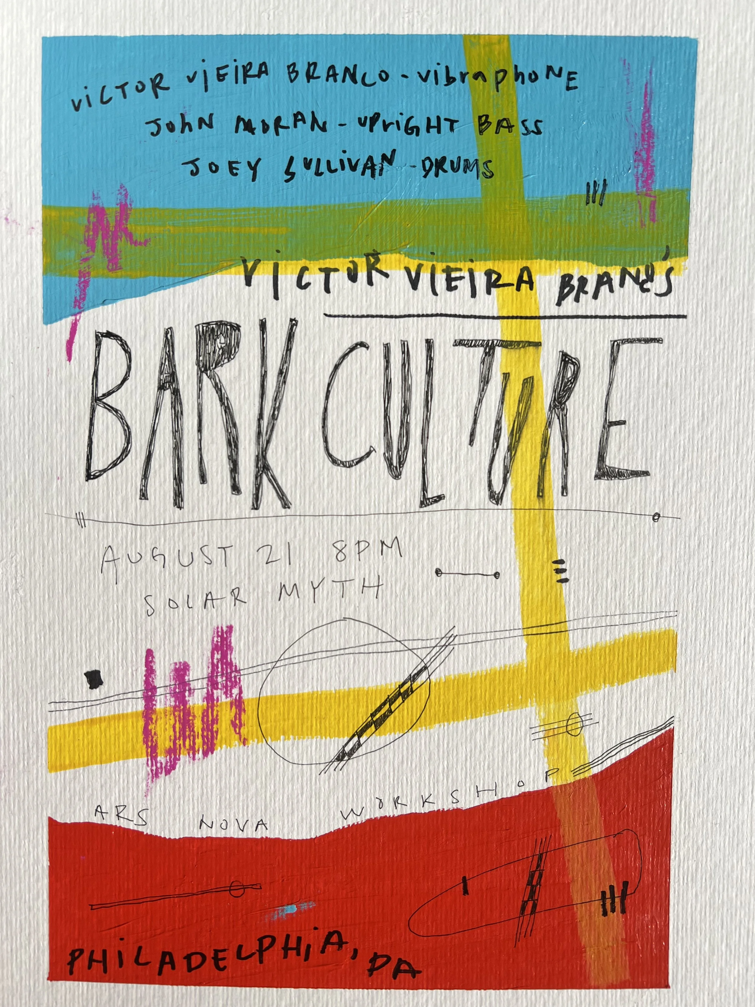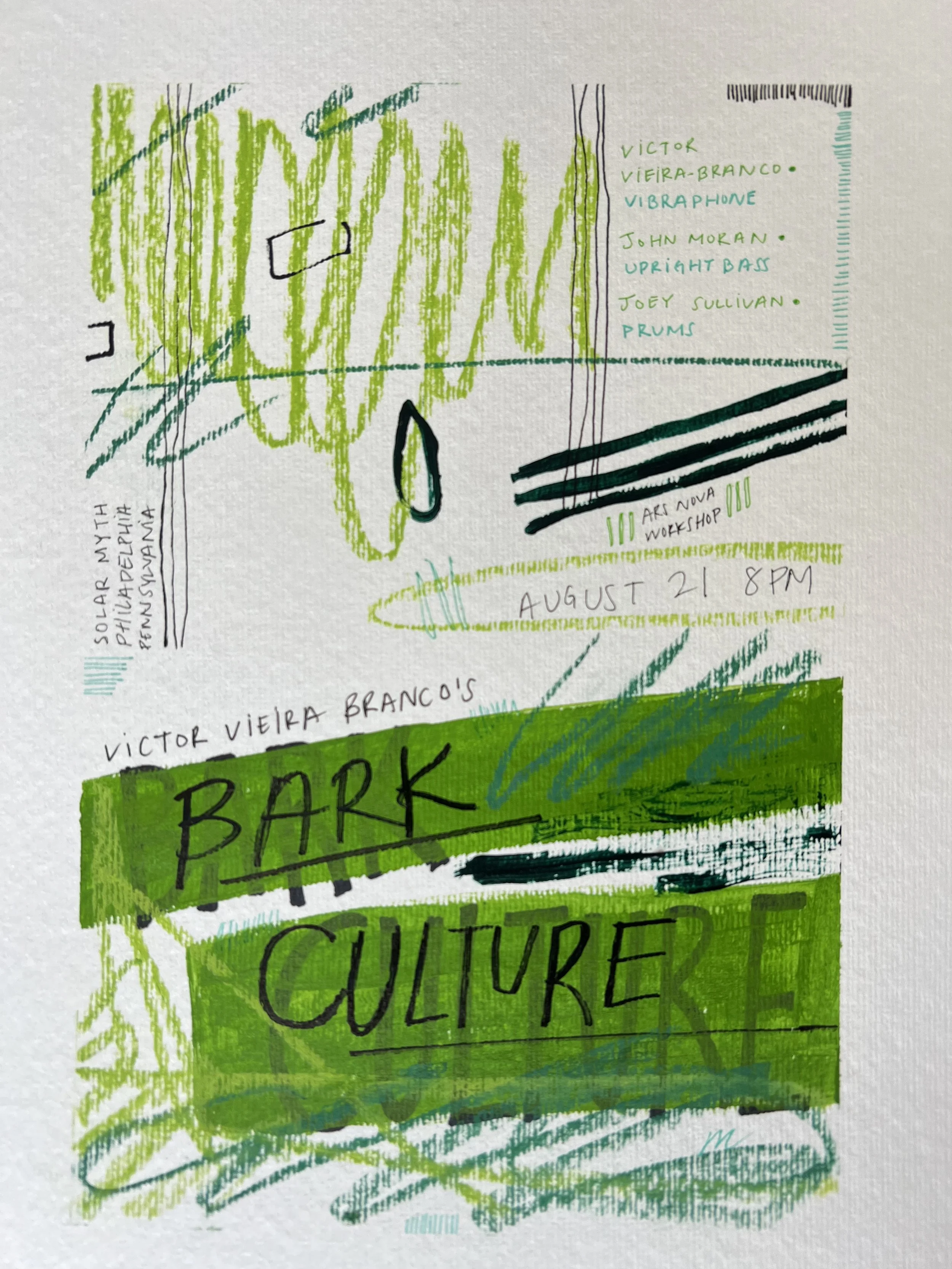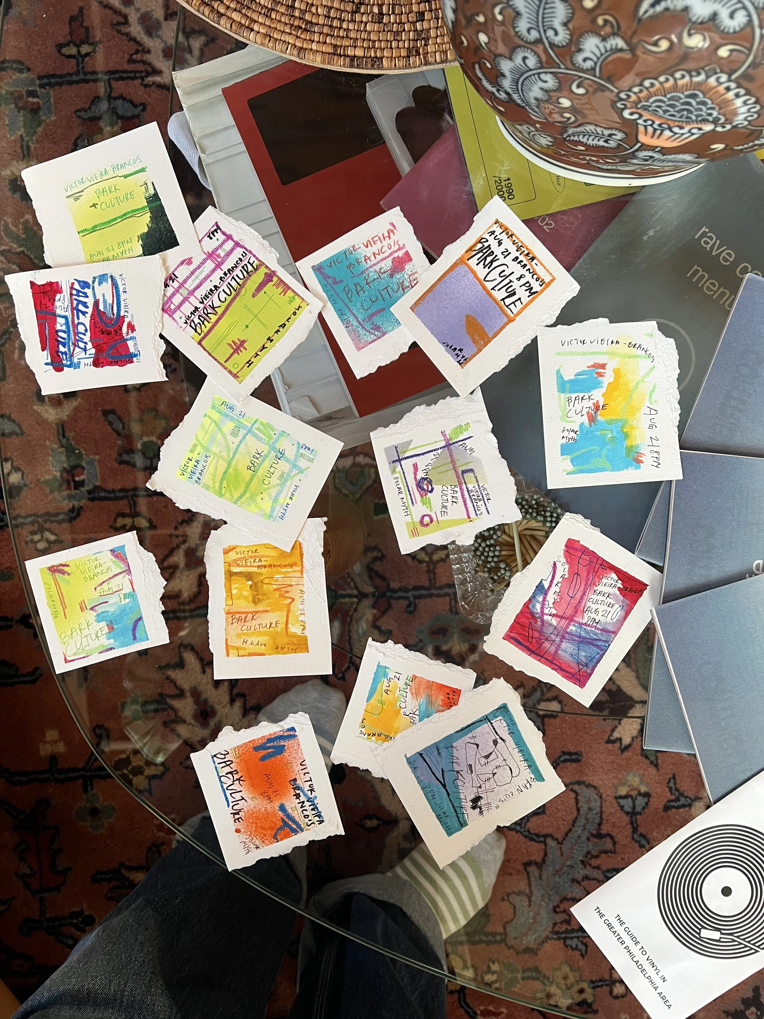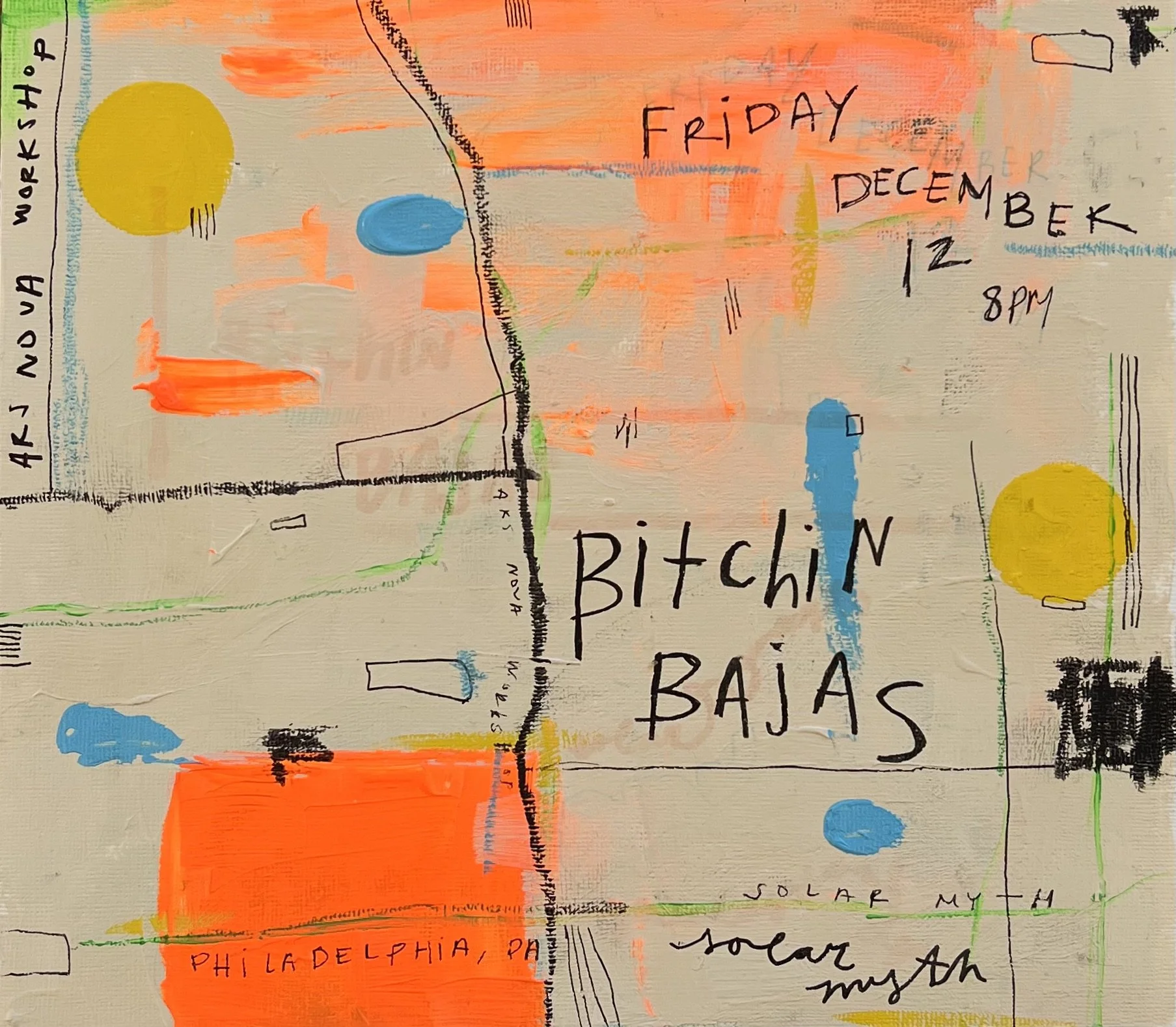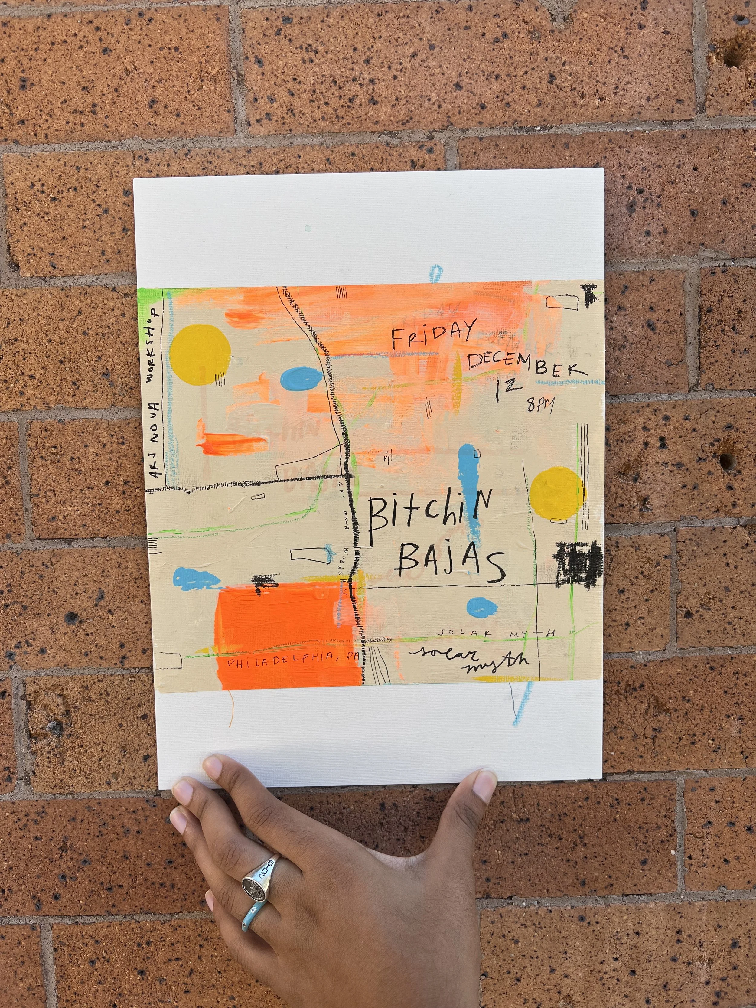 Each flyer is handmade with love and care, paint, markers, pastels, pens, watercolor, and whatever else I have lying around!